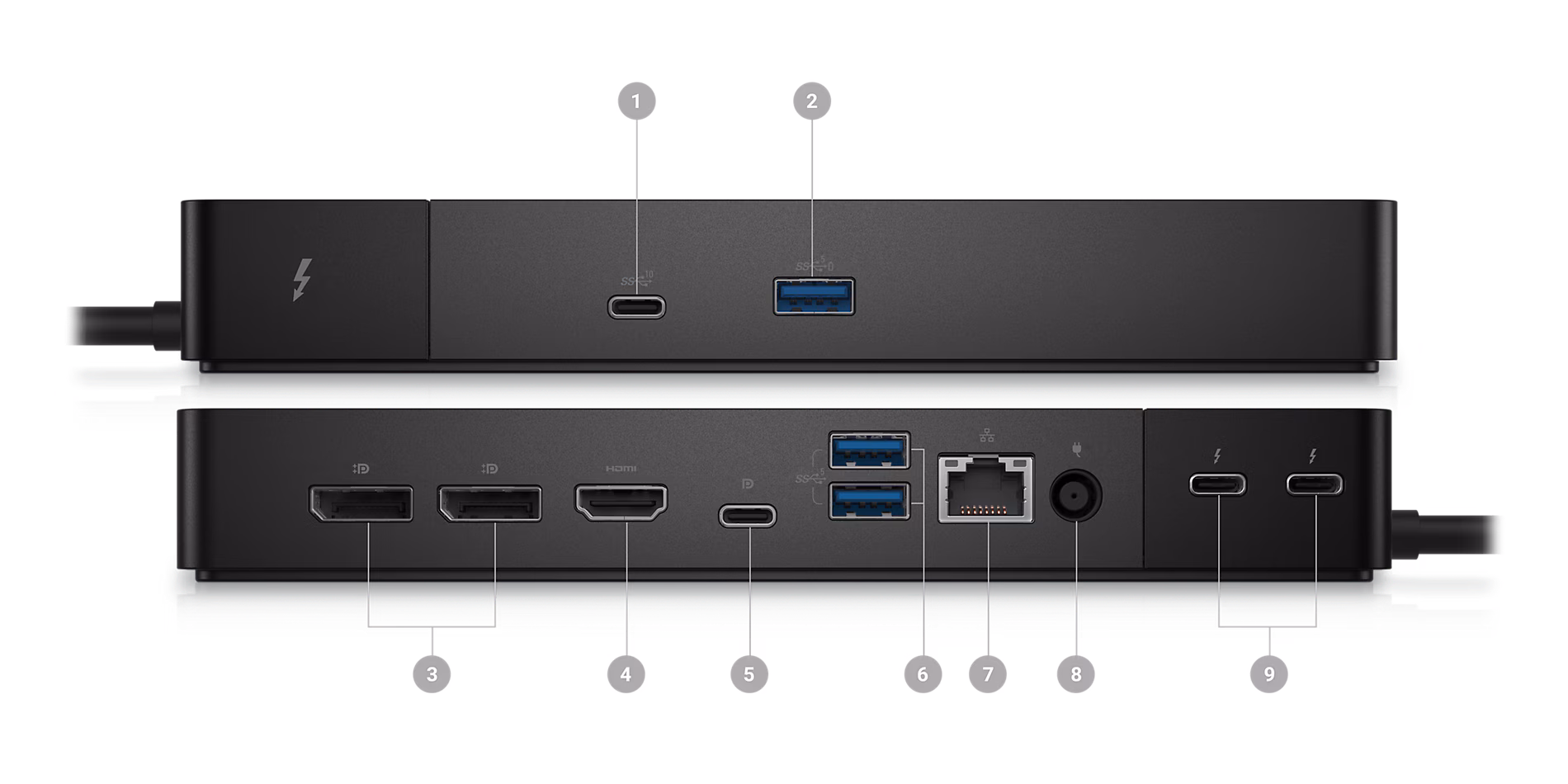 - Ports & Slots: USB-C 3.2 Gen 2, USB-A 3.2 Gen 1 with PowerShare, 2 x DisplayPort 1.4, HDMI 2.0, USB-C Multifunction DisplayPort, 2 x USB-A 3.2 Gen 1, Gigabit Ethernet RJ45, Power In, 2 x Thunderbolt1 4