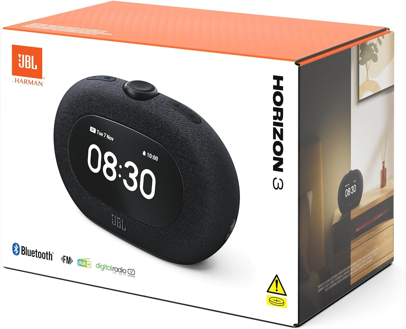 Its sleek black design complements any interior, combining functionality with style. Whether you want to wake up to your favorite radio station or enjoy music wirelessly, the JBL Horizon 3 offers a reliable and user-friendly experience.