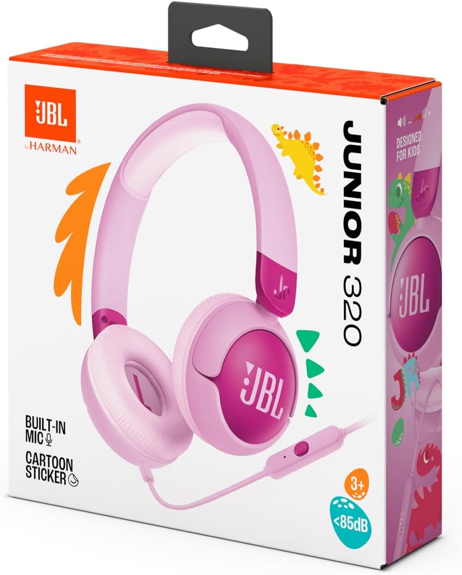 JBL JR 320 Kids Wired On-Ear Headphones with Safe Sound <85dB, Built-In Mic, Soft Padded Headband, and Foldable Design – Model JBLJR320PUR