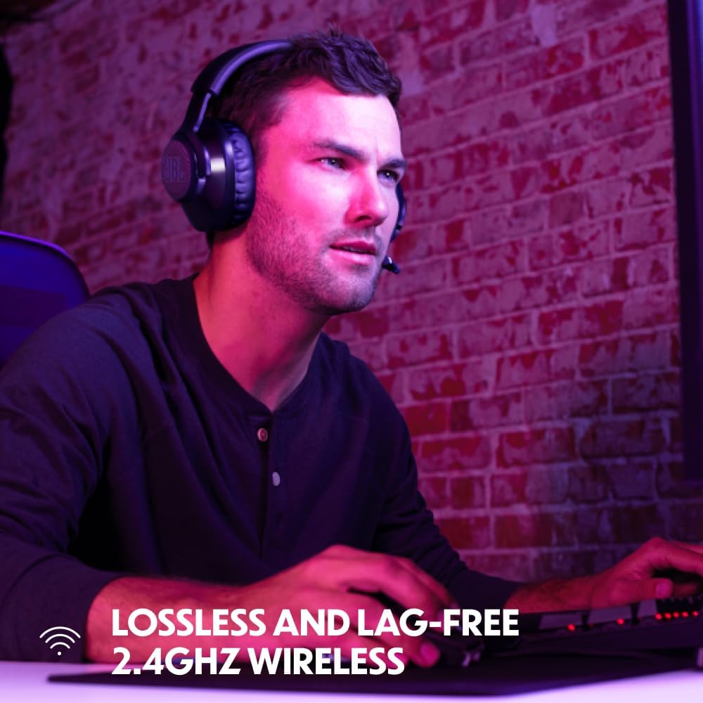 The JBL Quantum 350 Wireless Gaming Headset delivers immersive sound with its signature QuantumSURROUND technology, designed to enhance your gaming experience. Featuring a detachable boom microphone, it ensures crystal-clear voice communication during gameplay. The headset connects via a lossless 2.4GHz wireless connection, providing freedom of movement without compromising audio quality. With up to 22 hours of battery life and memory foam ear cushions, it offers long-lasting comfort for extended gaming sessions. Compatible with both PC and gaming consoles, the Quantum 350 is a versatile choice for gamers seeking quality and convenience.