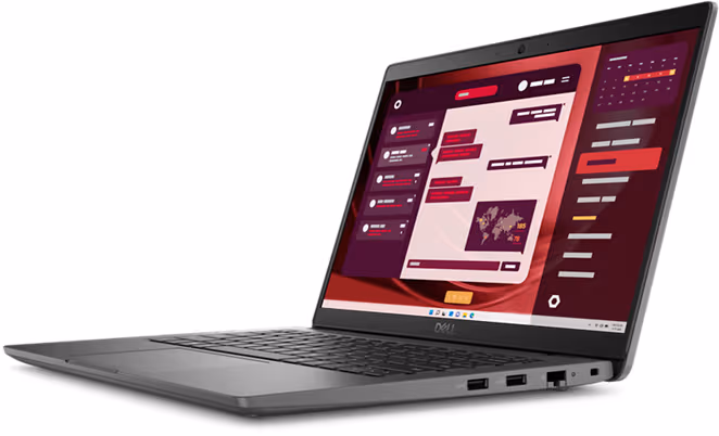 Sleek design: Latitude 3450 is a compact laptop featuring a soft charcoal color with a refined texture, delivering a modern and professional look.