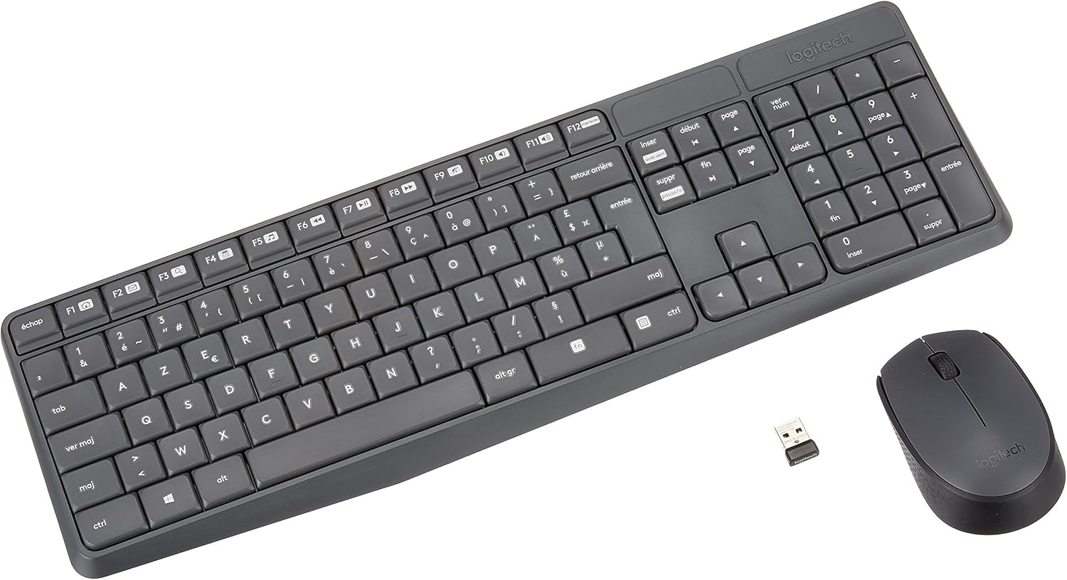 The Logitech MK235 is a reliable wireless keyboard and mouse combo designed for Windows users who prefer the AZERTY French layout. This grey set offers a comfortable typing experience and precise mouse control without the clutter of cables, enhancing your workspace efficiency.