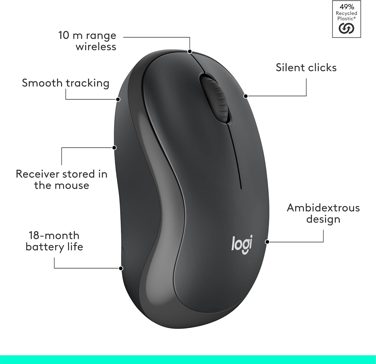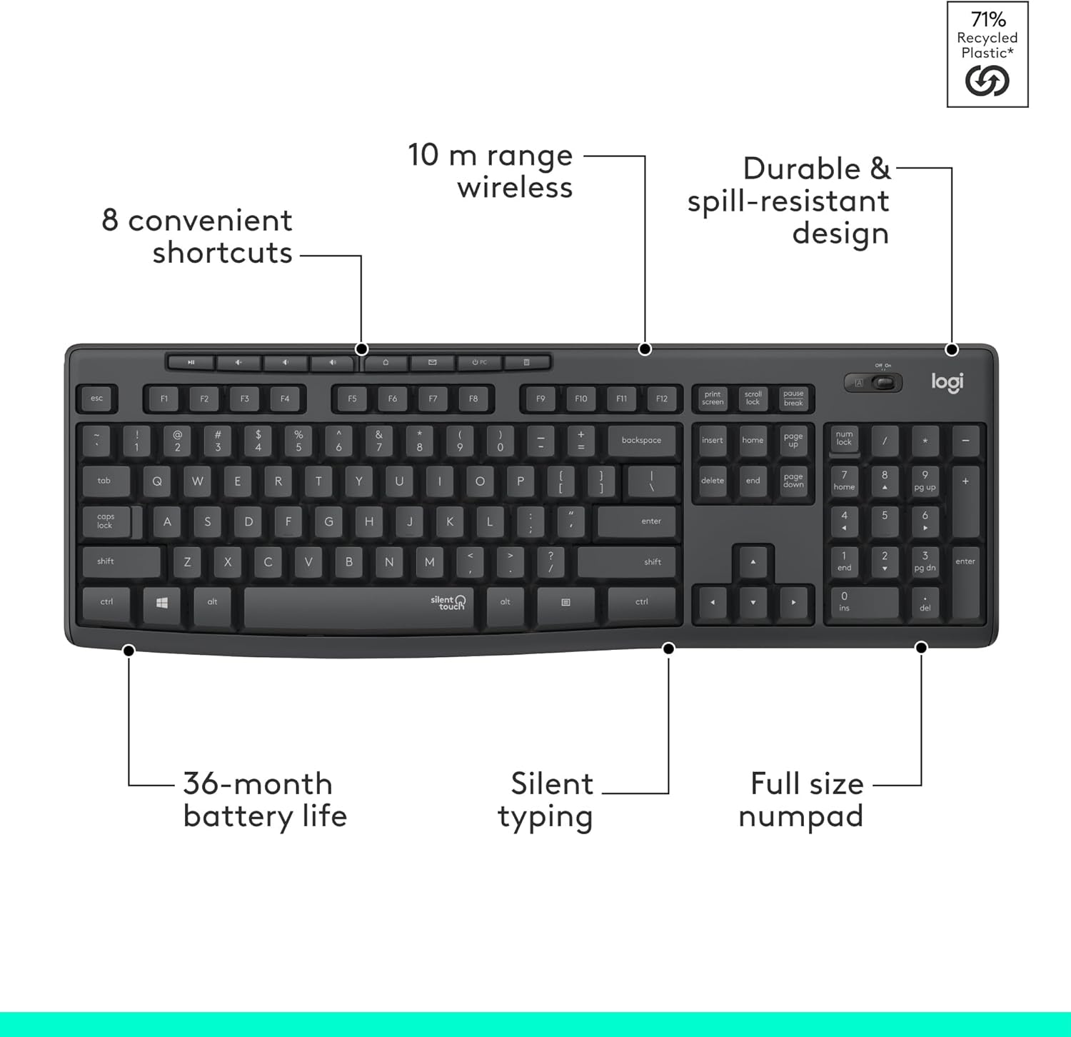 The Logitech MK295 Wireless Mouse & Keyboard Combo offers a quiet and comfortable typing and navigation experience with its SilentTouch technology, reducing noise by up to 90%. Designed for efficiency, the keyboard includes a full numeric keypad, making it ideal for both work and home use. The advanced optical tracking mouse ensures precise and smooth cursor control, while the lag-free wireless connection provides reliable performance without interruptions. The combo comes in a sleek graphite color that complements any workspace.