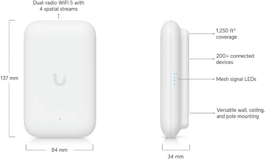 The Ubiquiti UniFi UK-ULTRA is a high-performance access point designed to deliver reliable WiFi 5 connectivity for both indoor and outdoor environments. It provides robust wireless coverage and seamless integration within the UniFi ecosystem, making it ideal for various deployment scenarios.
